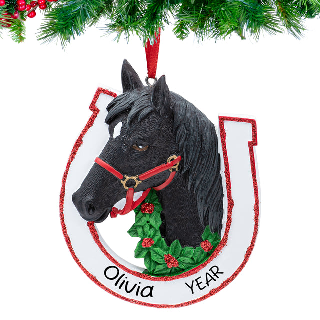 Personalized Black Horse Christmas Ornament is backordered and will ship as soon as it is back in stock.