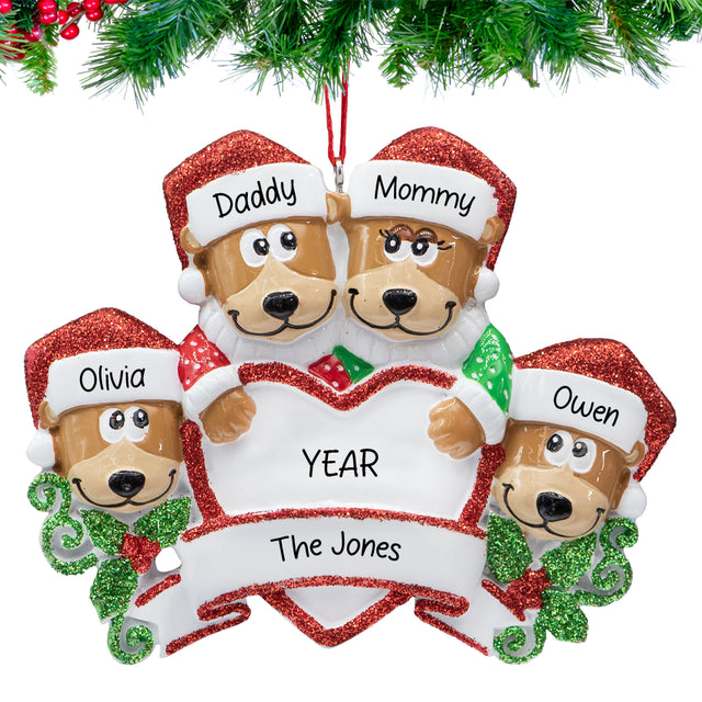 Personalized Brown Bear Family of 4 Christmas Ornament