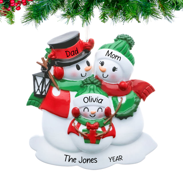 Personalized Lantern Snowman Family of 3 Christmas Ornament